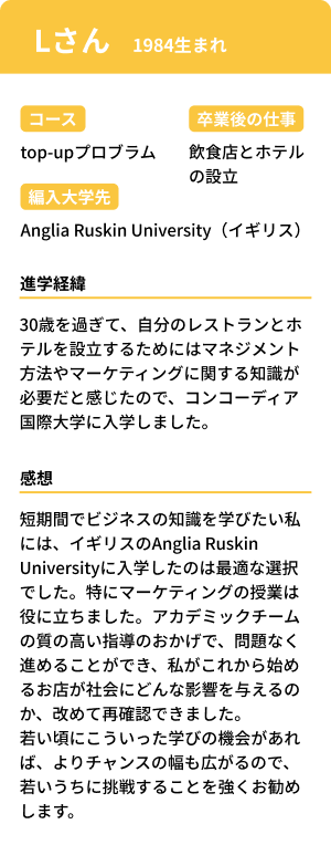 通常の海外大学は4年間で卒業しますが、 コンコーディア国際大学はその半分の2年間で卒業できるので、余った時間を有効に活用できます。